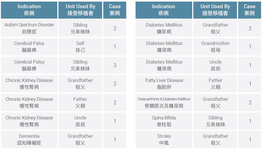HealthBaby Hong Kong is the cord blood bank with the most transplant cases in Hong Kong. 2 children suffered from cerebral palsy and 1 child suffered from neuroblastoma were successfully treated by cord blood they saved at HealthBaby upon birth, 1 more child suffered from Fanconi’s Anemia successfully used related allogeneic cord blood for transplantation. In 2022, 1 child suffered from Thalassemia Major successfully used related allogeneic cord blood for transplantation.